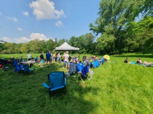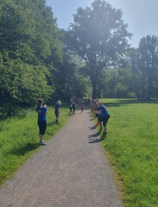 und windstill. Nach dem gemeinsamen Aufbau des Pavillons starteten die Kinder zu einem ca. 400 Meter langen Lauf, dabei wurden sie von den Erwachsenen beim Zieleinlauf angefeuert.
