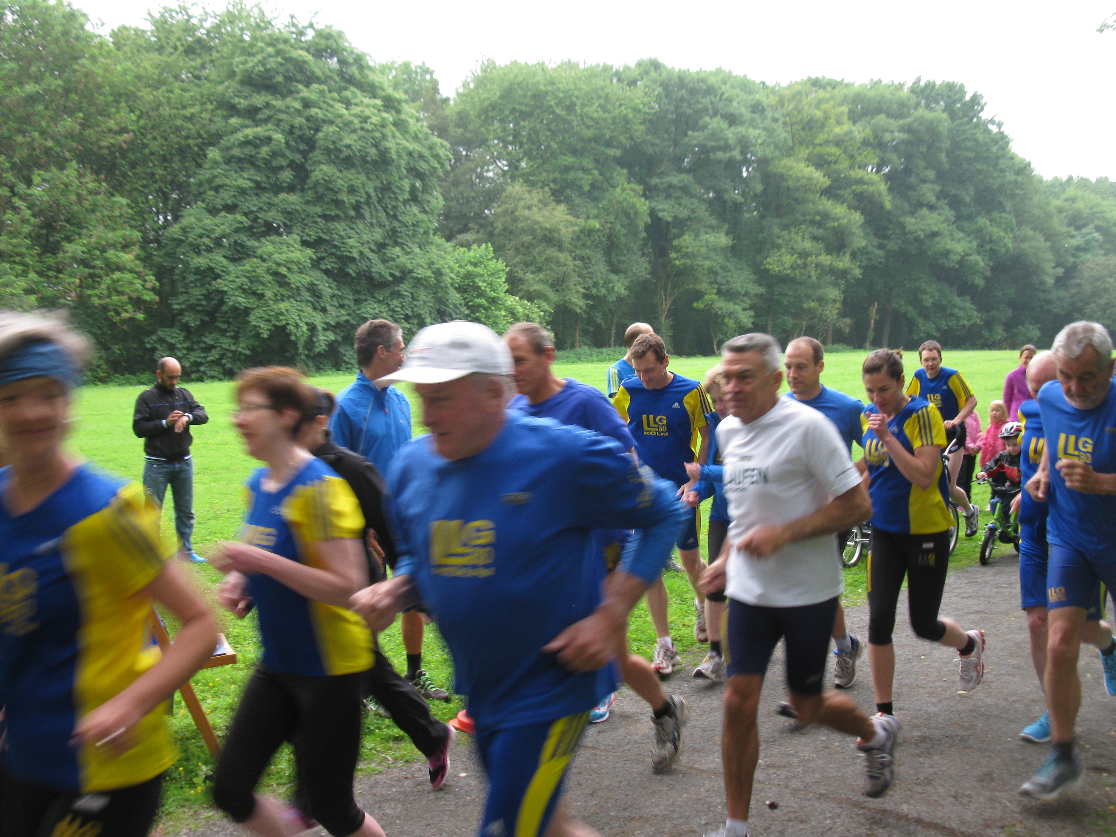 Am sog. Vatertag feiern die LLG´ler wie in allen Jahren im Trainingsgelände ein Familienfest. Es wird ein wenig gelaufen, gegrillt, man sitzt gemütlich zusammen und unterhält sich mit den Vereinsmitgliedern und Gästen. Für die große Aufgabe des Tages -einen Lauf über die Distanz von 4,7 Kilometer- gibt jeder seine eigene Zielzeit an, die er erreichen möchte. Dabei gewinnt derjenige, der seiner angegebener Zeit ohne Differenz am nächsten kommt, was schon einige Male gelungen ist. Vor dem Start wird natürlich überprüft, dass kein Teilnehmer eine Uhr trägt! 30 Aktive waren am Start und alle liefen mit der gebotenen Zurückhaltung los um das gesetzte Ziel auch erreichen zu können.