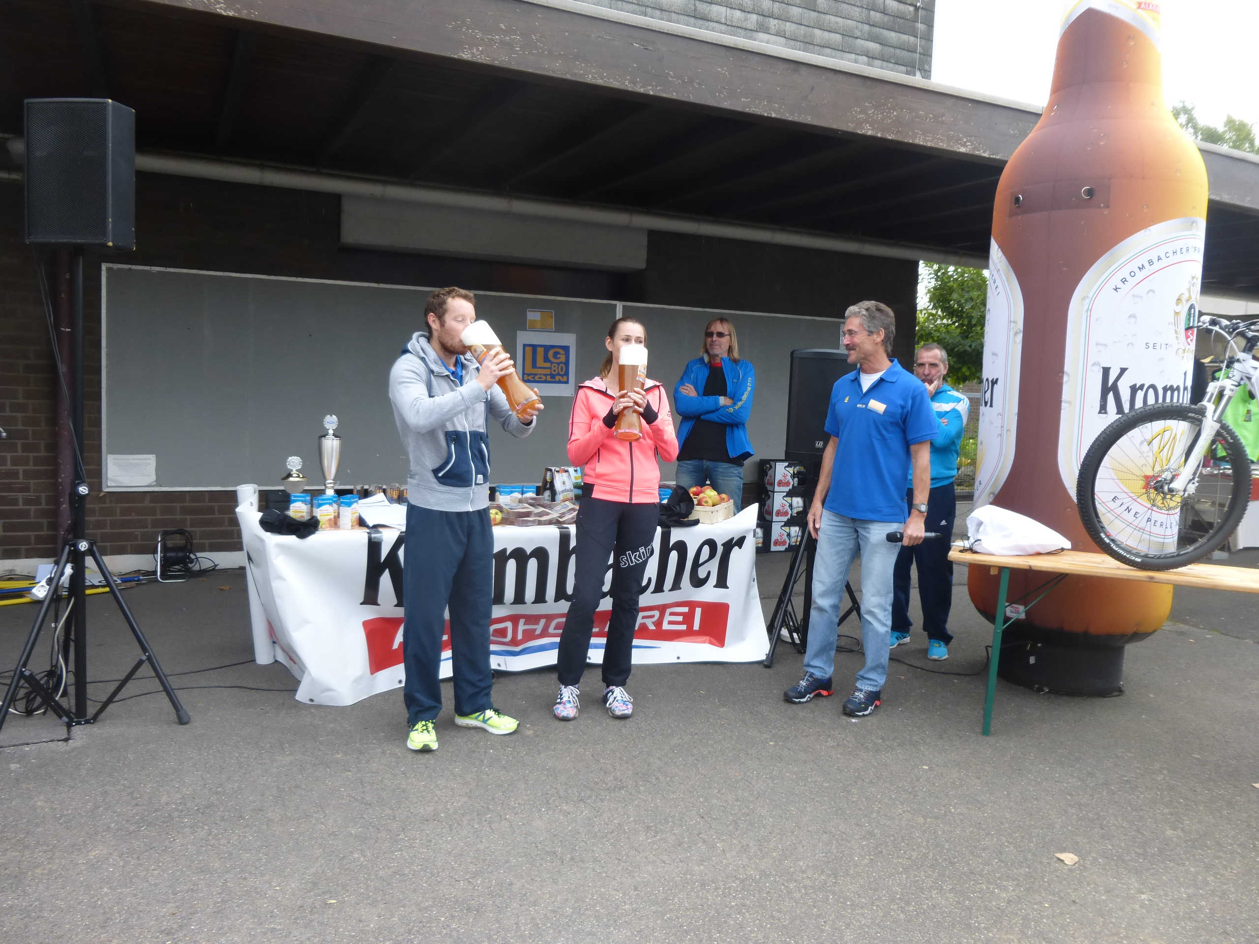 Im Ziel gibt es für die Finisher des 5 Kilometer- und 10 Kilometerlaufs sowie die Halbmarathonis neben dem schon legendären „Apfel mit Biss“ auch diesmal die Erfrischungsstation „Krombacher ALKOHOLFREI“ und Krombacher „FASSBRAUSE“, später gibt warmes Duschwasser auch für den letzten Läufer.