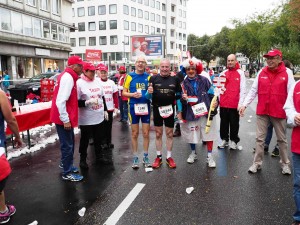 Inzwischen waren dunkle Wolken aufgezogen, es wurde kalt, aber wir mussten nicht so lange warten: der Start erfolgte um 10:06 Uhr für die ersten Läufer, wir waren schon um 10:15 Uhr auf der Startmatte- so früh wie noch nie, ein Lob an die Organisation.