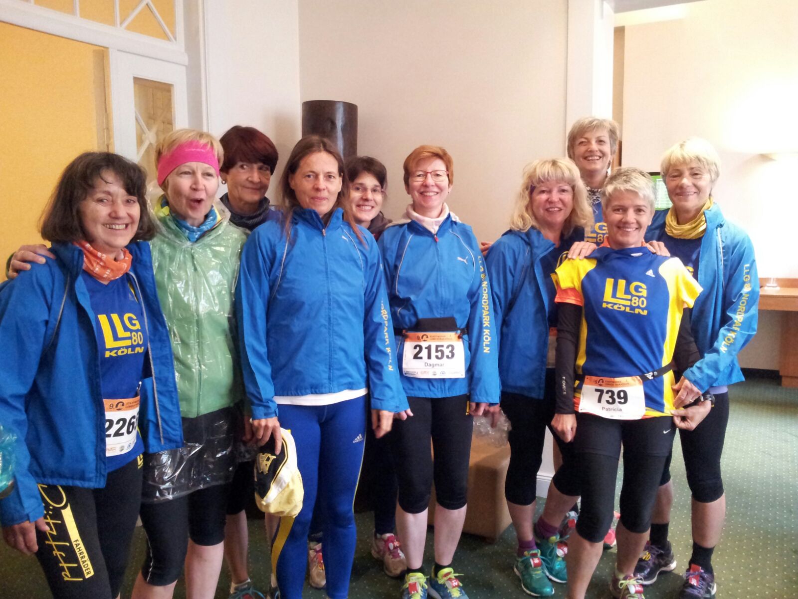 Zuerst gingen Monika, Patricia und Nicole auf die Halbmarathonstrecke, dann folgten Tine, Gisela,Rosi, Ute, Renate, Dagmar und Petra zum 10 km Lauf. Die Strecke war angenehm zu laufen, größtenteils eben bis auf einen 800 m langen Tunnel, der sehr steil abwärts ging und dann natürlich auch wieder sehr steil nach oben. Doch mit guter Musik und tollen Lichteffekten schaffte man auch diese Hürde. Das Wetter spielte auch mit, es blieb trocken und die Temperatur war optimal zum Laufen. Im Großen und Ganzen waren alle zufrieden.