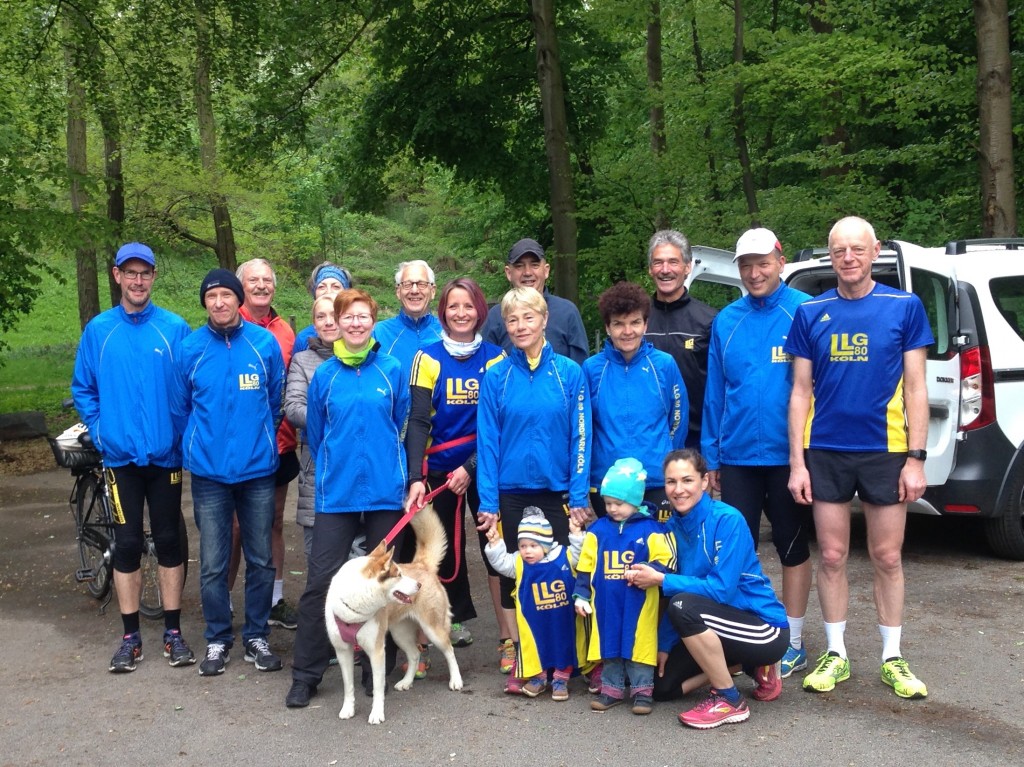 Zusammen mit Radbegleitern und unterstützt von Leo und Lilli im Laufbuggy starteten sie um 8.30 Uhr vom Unterstand der LLG 80 zum Rheinufer in Niehl bis nach Rodenkirchen. Von dort parallel zur Militärringstraße vorbei am Geißbockheim zur Aachener Straße und Venloer Straße zurück zum Startpunkt. Das Wetter besserte sich, die Sonne kam durch und der Gegenwind wurde ab Junkersdorf zum Schiebewind. Während der angesagten Pausen konnte sich jeder nach seinen Bedürfnissen verpflegen. Einige fuhren mit öffentlichen Verkehrsmitteln nach Hause, wie sie es vor dem Start schon angekündigt hatten.