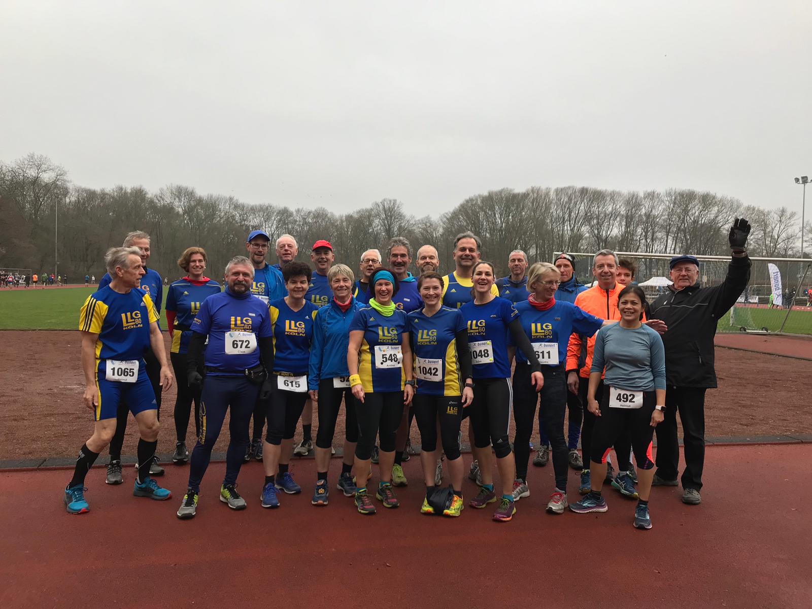Trotz einiger Absagen wegen Krankheit war eine enorme Anzahl LLG´ler angetreten um die 10 Kilometerstrecke beim Silvesterlauf am Sportpark Höhenberg unter die Füße zu nehmen. Mit Temperaturen um 10 Grad und leichter Luftfeuchtigkeit waren die äußeren Bedingungen gut.