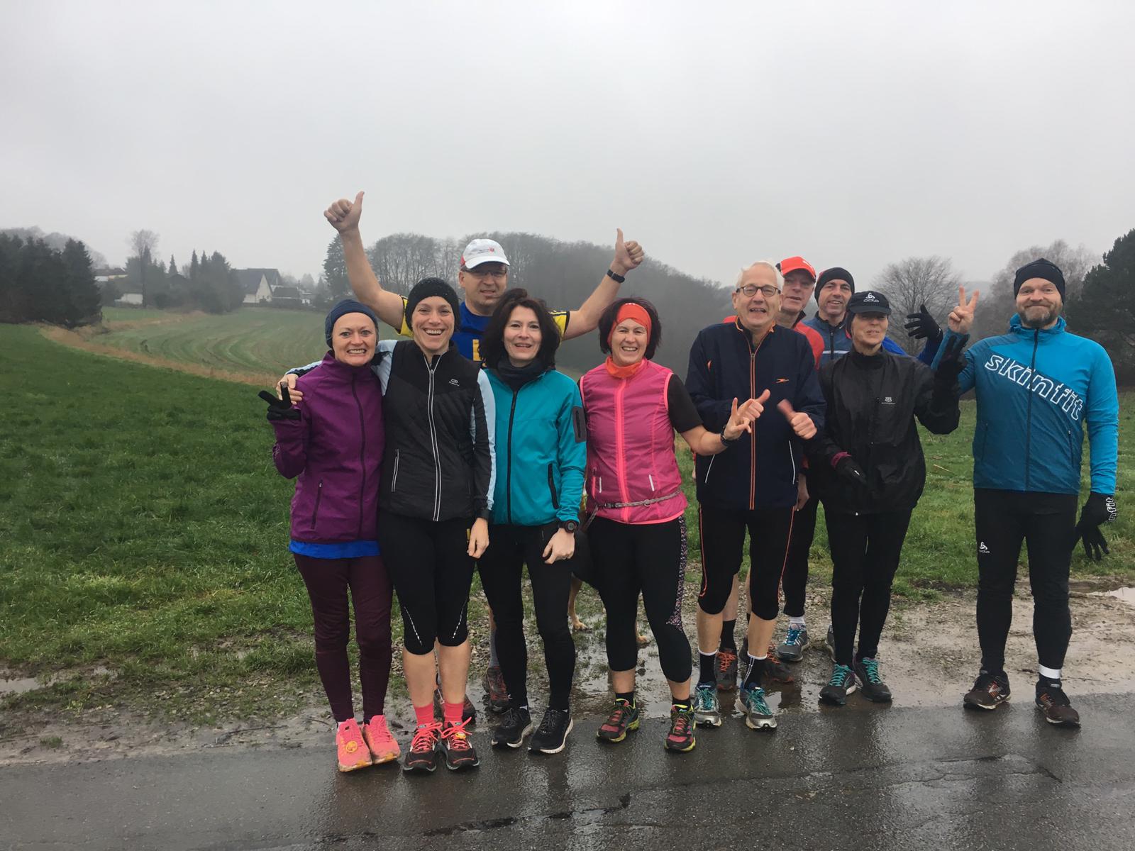 Im 170 Meter höher gelegenen Witzhelden starteten wir bei anfänglichem Nieselregen und heftigem kalten Wind unseren Lauf.