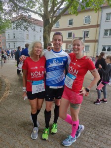 Am 19.Mai startete Verena bei schwül-warmen Wetter (hier im Bild links mit einer weiteren KölnMarathon-Botschafterin) und es wurde unterwegs stetig wärmer: “Man wurde auf freier Marathonstrecke regelrecht gekocht”, so ihr Eindruck. Jedoch erreichte sie mit einer Zeit von 05:13:53 Stunden sogar den ersten Platz der Altersklasse W65! Wir gratulieren Verena ganz herzlich zu ihrem Erfolg!