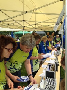 An ganz vielen Stellen (hier bei der Ausgabe der Teilnehmerurkunden) waren wir involviert und haben den Tag für die sehr vielen ganz jungen und erwachsenen Teilnehmerinnen und Teilnehmer zum Erlebnis werden lassen. Dieter Baumann -Olympiasieger und Laufprofi- ging zusammen mit allen an den Start und absolvierte dabei gleich vier Läufe. So leitete er als sportlicher Schirmherr in ganz besonderer Weise die jüngsten Kinder an, ihren Lauf über 400 Meter nicht sofort loszurennen, indem er mit ihnen den ersten Teil der Strecke ging.