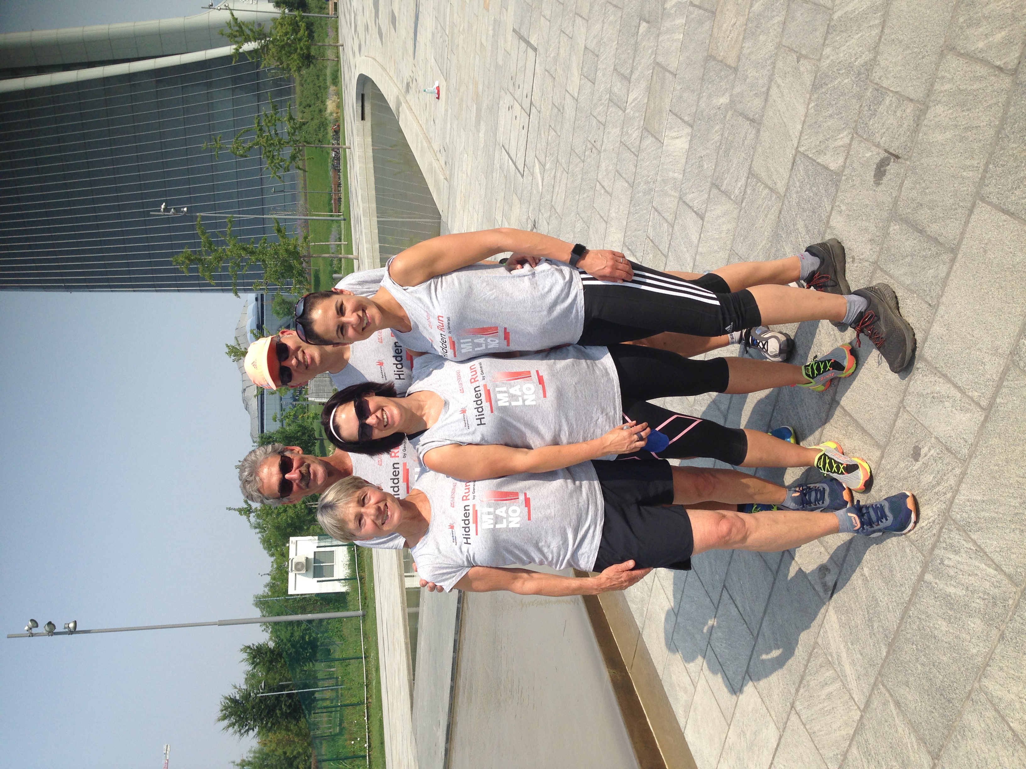 Schon zum Beginn hatte jeder eine Flasche Wasser in der Hand.Für Andrea, Silke, Rosi, Heijo und Thomas und die gesamte Gruppe begann ein Stadtlauf der besonderen Art: Die großen Sehenswürdigkeiten Mailänder Dom, die Scala, der Hauptbahnhof, der Hauptfriedhof, die große Einkaufspassage und viele weitere passierten wir, immer suchten die Teilnehmerinnen und Teilnehmer die Schattenseite der Straße zu nutzen. Die Gehpausen waren willkommene Erholung in der Hitze und an zwei vorher festgelegten Punkten gab es wieder kühle Trinkwasserflaschen für alle, die an den überall präsenten Trinkwasserspendern aufgefüllt werden konnten.