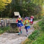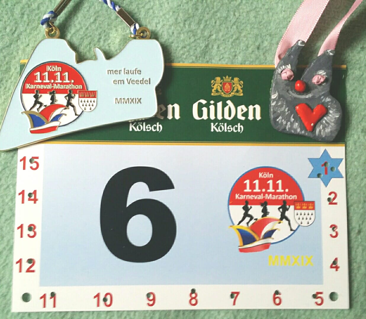 Hierbei wurden wir von Maria, die mal eben ein Ründchen in Jeans und Pulli mitlief und Edith verkleidet ab Runde 7 auf der Strecke sowie von Lydia und ihrem Sohn Leon an der Strecke unterstützt. Unsere Planzielzeit von 4:44:44 Stunden für den Karnevalsmarathon am 11.11. haben wir verfehlt, aber wir kamen immerhin vor dem großen Regen gemeinsam gut gelaunt nach 4:53:50 Stunden ins Ziel und nahmen glücklich unsere Karnevalsorden in Empfang. Von insgesamt 11 (!) Teilnehmerinnen wurden wir beide auf Platz 5 gewertet und erreichten jeweils den ersten Platz der Altersklassenwertung!”