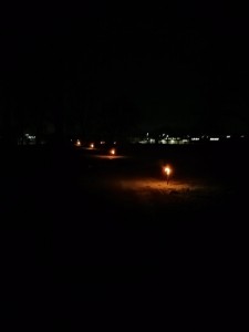 Da alles unter freiem Himmel stattfand, konnten wir sogar die Feuerschale aus dem Ziel auf den Versammlungsplatz herüberholen. Das hatte schon was von Lagerfeuerromantik!