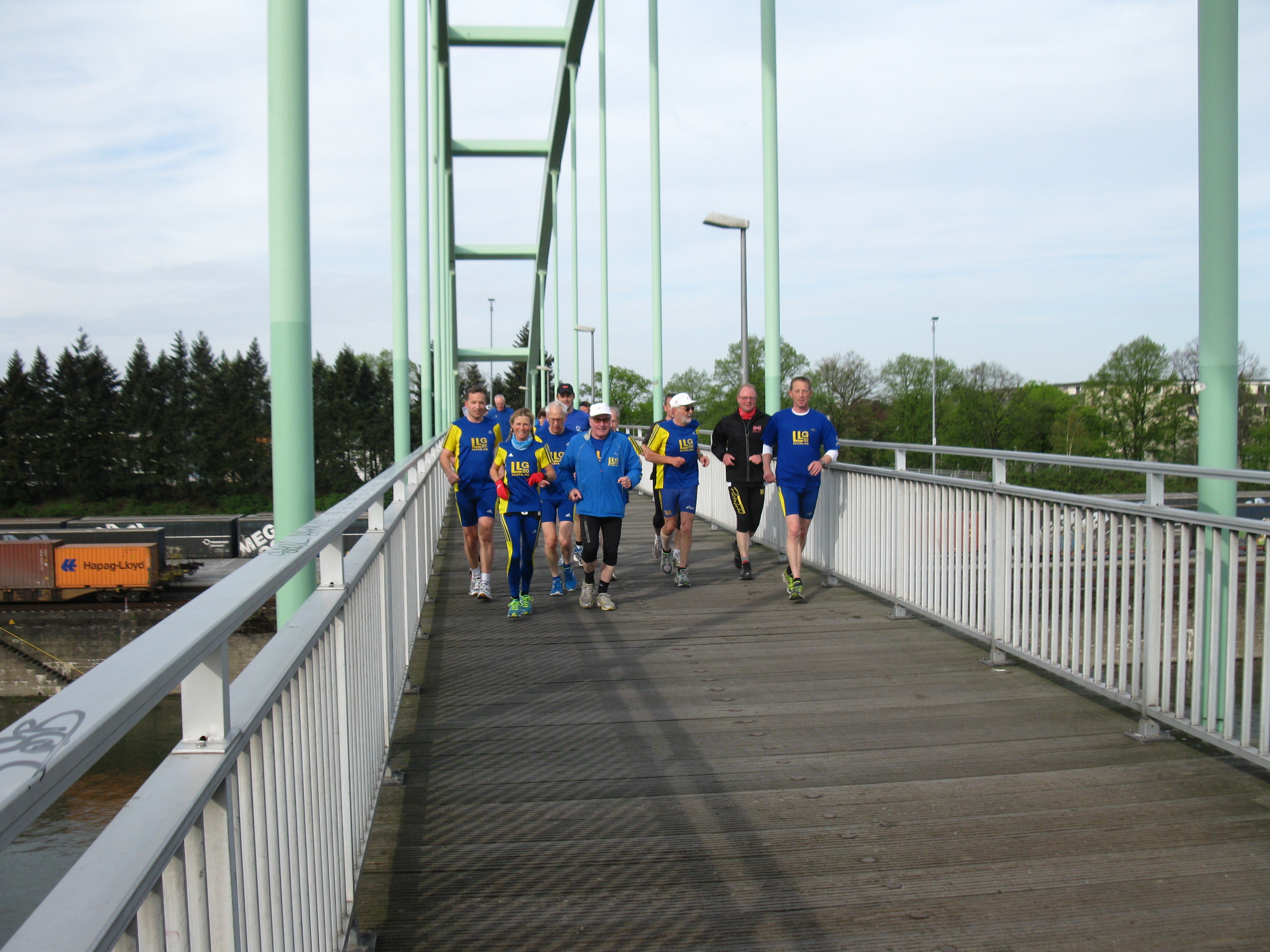 In diesem Jahr waren um 8.30 Uhr neben den “üblichen Wiederholungstätern” auch mehrere Radfahrer und Inlineskater dabei. Die Niehler Hafenbrücke vibrierte schon heftig, als über zwanzig Aktive sie passierten.